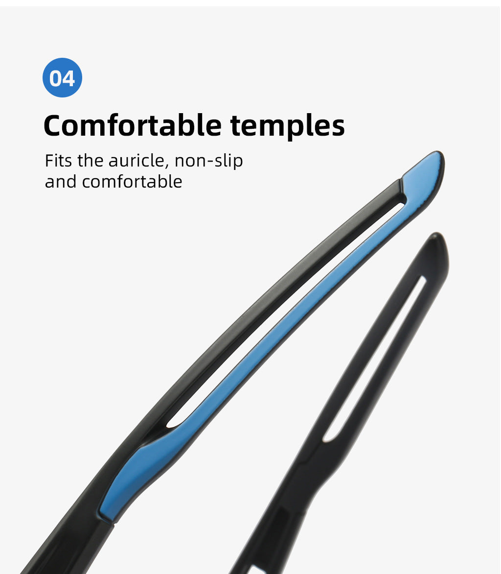 - Secure & Non-Slip Temples: Ergonomically designed temples fit snugly and comfortably around the auricle, providing a secure, non-slip grip even during intense movement.