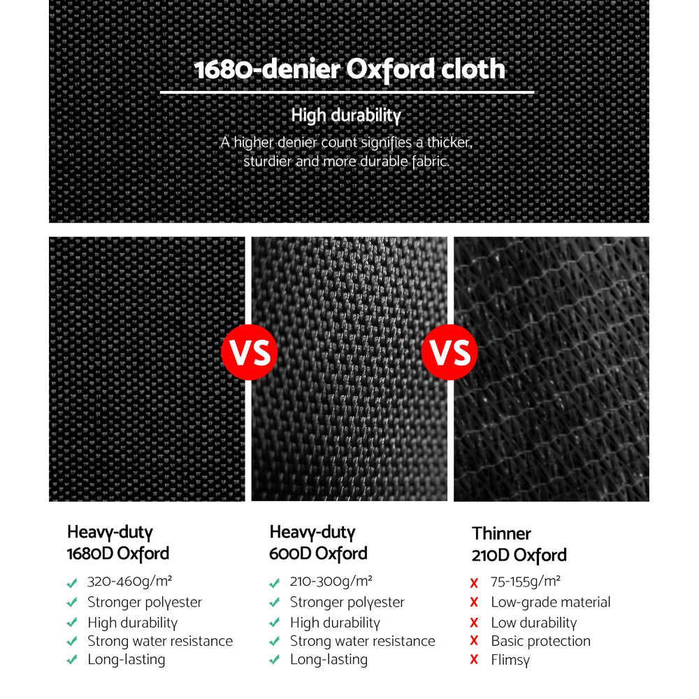 Fabric material: 1680D oxford (exterior) and 1680D diamond texture Mylar (inner)