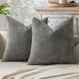 Grey Plush Chenille Cushion Covers Set of 2 - Soft Textured Decorative Throw Pillow Cases for Sofa Couch, 45x45cm