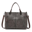 Grey Women's Classic PU Leather Tote Bag with Double Handles - Multi-Pocket Shoulder Bag in Black