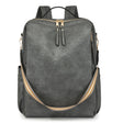 Grey Women's Vintage PU Leather Anti-Theft Backpack - Convertible Shoulder Bag & Laptop Rucksack for Travel & Daily Use
