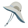 Grey(Dark Blue Webbing) Wide Brim Sun Hat with Cape - Foldable UV Protection - 10cm Brim