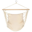 This cream coloured hammock has the shape of a comfortable chair and is the ideal kind of garden furniture to relax in. The hammock is suspended from a wooden spreader. Through the metal eyelet you can easily attach the hammock to a stand, pole or tree. The hammock chair is suited for 1 person and has a carrying capacity of 110 kg.