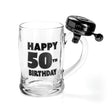 Glass beer mug with a black bell attached to the handle – ring it when it's time for another drink!