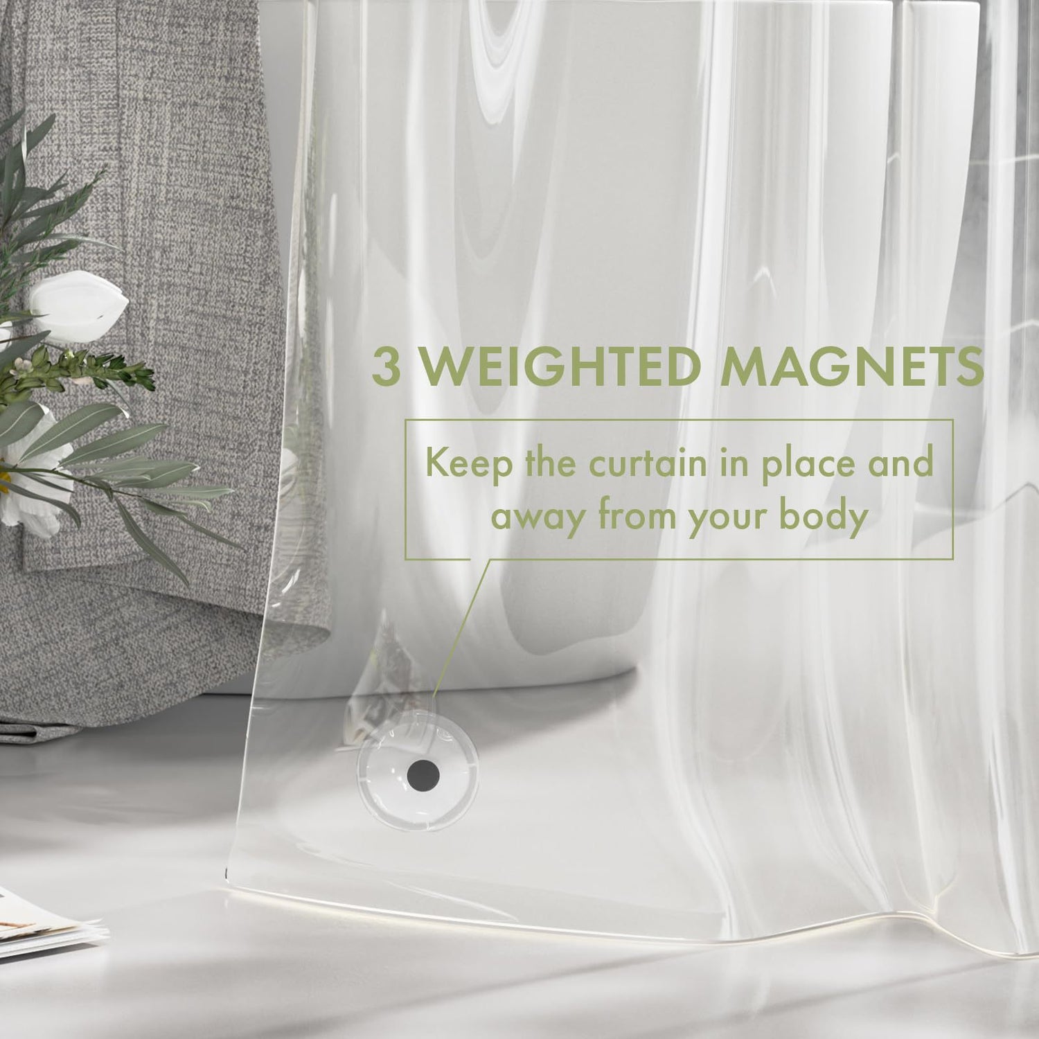 Heavy-Duty Clear PEVA Shower Curtain Liner with 3 Magnets - Waterproof & Easy-Clean Bathroom Liner with Hooks
