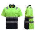 HI VIS Short Sleeve Workwear Shirt w Reflective Tape Cool Dry Safety Polo 2 Tone, Fluoro Yellow / Navy, 3XL