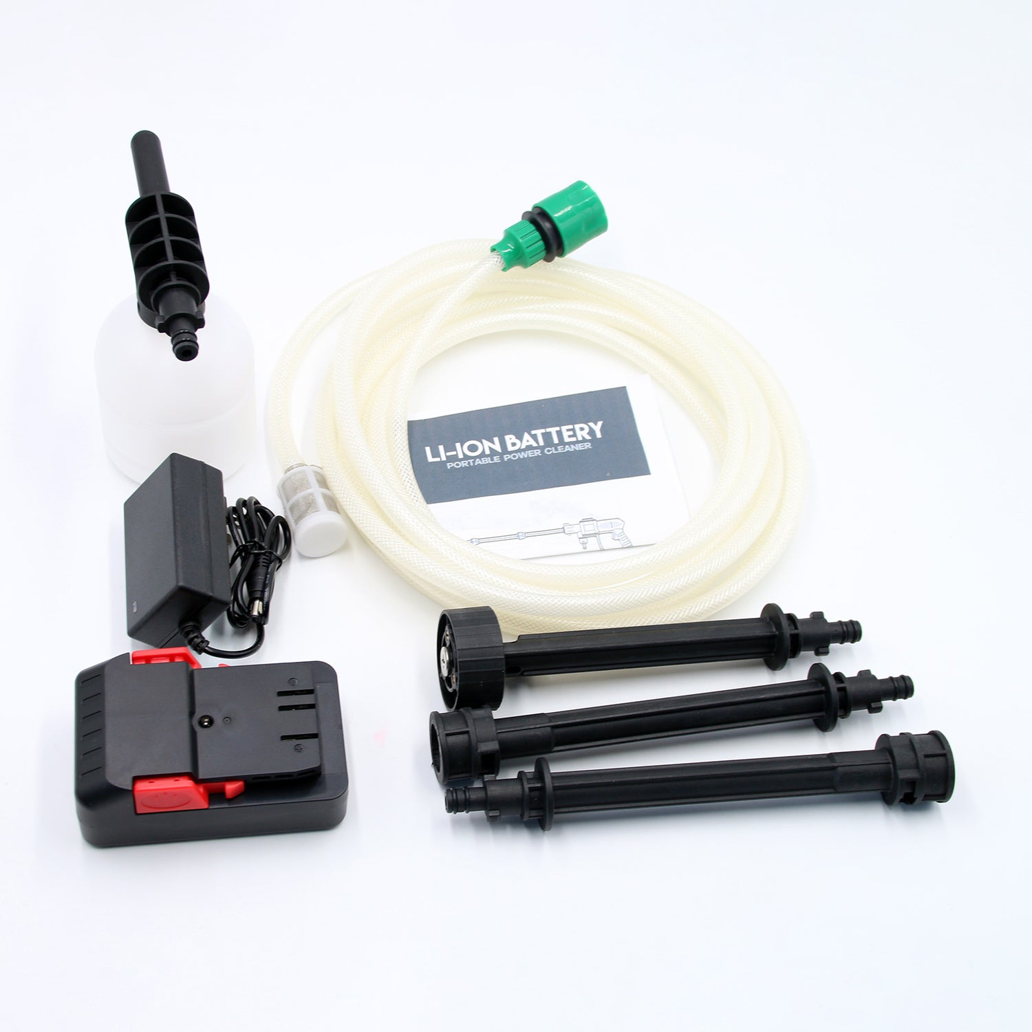 Model number: LB-X030Lithium Battery Capacity: 2000mAhMotor voltage U: 21VPressure: 17BarRated Battery Life: 25minsMax. rated flow rate:144 l/hMachine weight: 1.4kgColor: BlackApplication: car washing/bike washing/watering flowers/garden washing/furniture washing/pet bathing, etc.