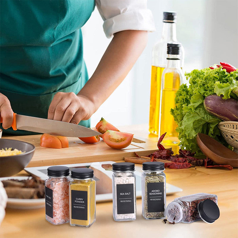 - 12 × Glass Spice Jars (120ml)