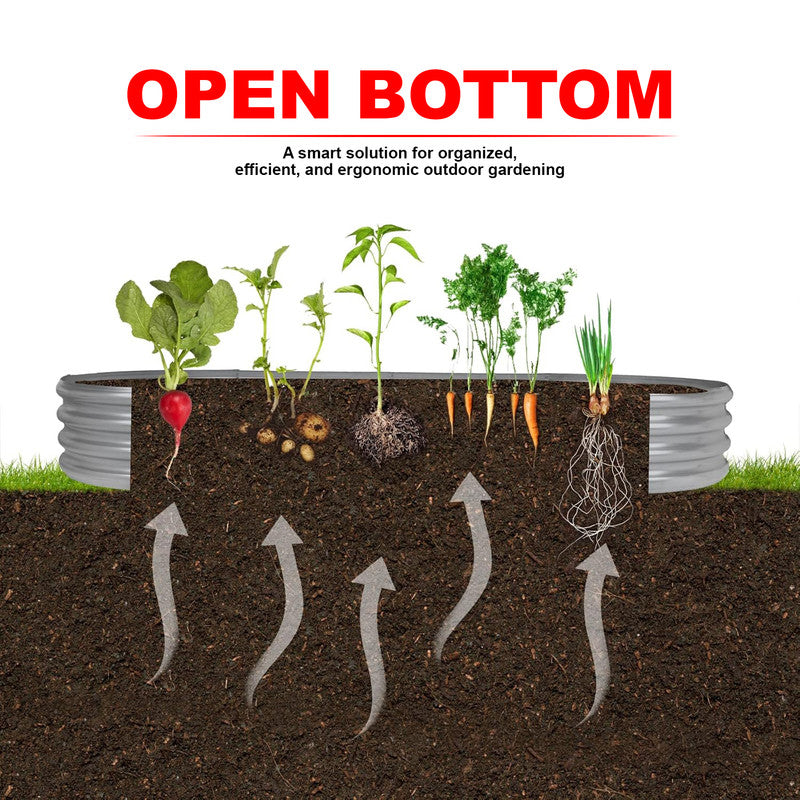 - Perfect for growing vegetables, herbs, or flowers, this planter box features an open base that encourages natural drainage and root growth. The thickened metal frame ensures long-lasting durability, while its smooth silver finish adds a sleek touch to any outdoor area.