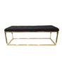 Whether placed in a living room for relaxation, used in a bedroom as a chic accent, or positioned in an entryway for a convenient seating option, the Holly Ottoman Gold Base - Black Seat adapts to your needs. Its sophisticated design and multi-functionality make it suitable as a footrest, extra seat, or decorative focal point in any home setting.