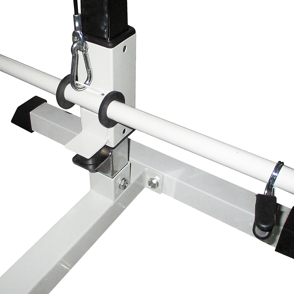 This gym accommodates weights with standard one-inch holes and includes adaptors, so you can use two-inch Olympic-sized weight discs. Built to last for years with frequent, rigorous use, this home gym is the perfect way to keep fit in the comfort of your own home. Get yours today!