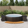 Enhance the spa experience for you and your guests with this stylish hot tub surround. Durable material: PE rattan, also known as poly rattan, is weather resistant and easy to clean. It remains beautiful on the outside for a long period of time. It's more economical than other materials, while offering great quality, convenience and an aesthetic look.Stable frame: The storage shelf's frame is made of powder-coated steel. Steel is an exceptionally hard and strong material. It offers sturdiness and stability. The powder coating on steel creates a protective layer against wear and tear.Solid acacia wood: The spa step is made of solid acacia wood. Solid acacia wood is a beautiful natural material. Acacia wood is a tropical hardwood, which is dense, sturdy, and durable.Storage space: Featuring a built-in storage area, the hot tub enclosure keeps all the essentials organised and within easy reach.
