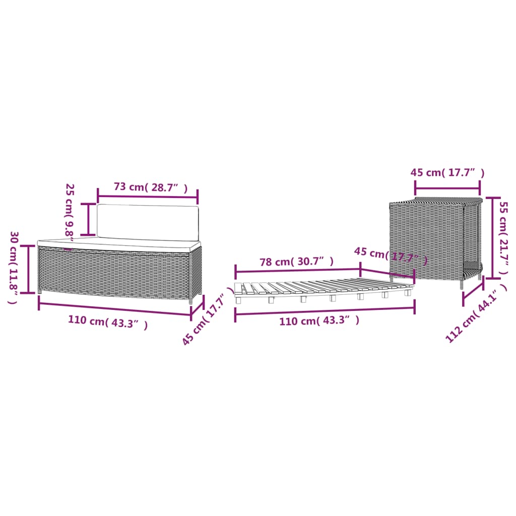 - Bench dimensions: 73/110 x 45 x 55 cm (L x W x H)