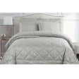 Add an extra layer of warmth and comfort to your bed with this 3 Piece Eli Jacquard Comforter Set Silver by Hotel Living. This comforter will provide you a good night's sleep. The comforter features a subtle geometric design and diamond quilted pattern in soft colour tone that easily fit with most existing bedroom decor. It is made from quality and easy care microfiber fabric and microfiber filling for softness you can enjoy all night long.
