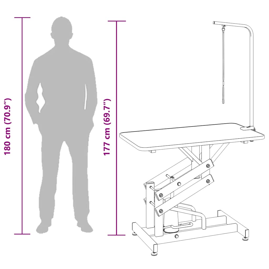 This hydraulic grooming table is perfect for home and mobile groomers, dog shows etc. It features a non-slip tabletop and a powder-coated iron frame with adjustable grooming arm and feet. This professional hydraulic grooming table is versatile and brings comfort to any grooming situation. The table top with an anti-skid rubber surface creates a comfortable surface for your pets to stand on while you groom. Also, the heavy-duty quality grooming arm is convenient to dismount when not in use for easy storage and transport, not to mention the hydraulic design which allows the feet to adjust to an ideal height. The adjustable grooming loop restrains pets safely and features an improved locking slide clasp. Delivery includes 1 x grooming table, 1 x clamp-on adjustable arm and 1 x grooming loop.