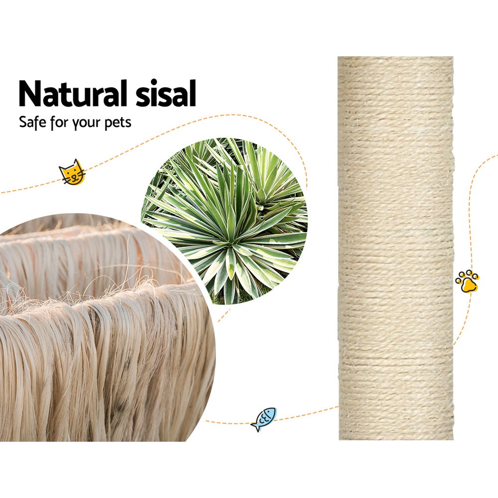 Built to satisfy the natural instincts of your precious pet, our i.Pet Cat Tree includes a host of nooks and crannies for your cats to have hours of fun scratching, hunting, climbing, jumping, hopping or simply lounging around. The medium-sized cat tree is built on a stable base to prevent tipping and the sturdy wood construction is built to last through years of play. Natural sisal posts encourage your cat's scratching instincts and help maintain healthy claws. The plush, soft linen cover will lull your cats to sleep on two plush bed platforms, one fabric hammock, a bubble dome, a closed cubby and a private cat-shaped cubicle. With multiple levels and access points your cats can jump, climb and observe the home on high. Keep your cat feline fine with an i.Pet Cat Tree.