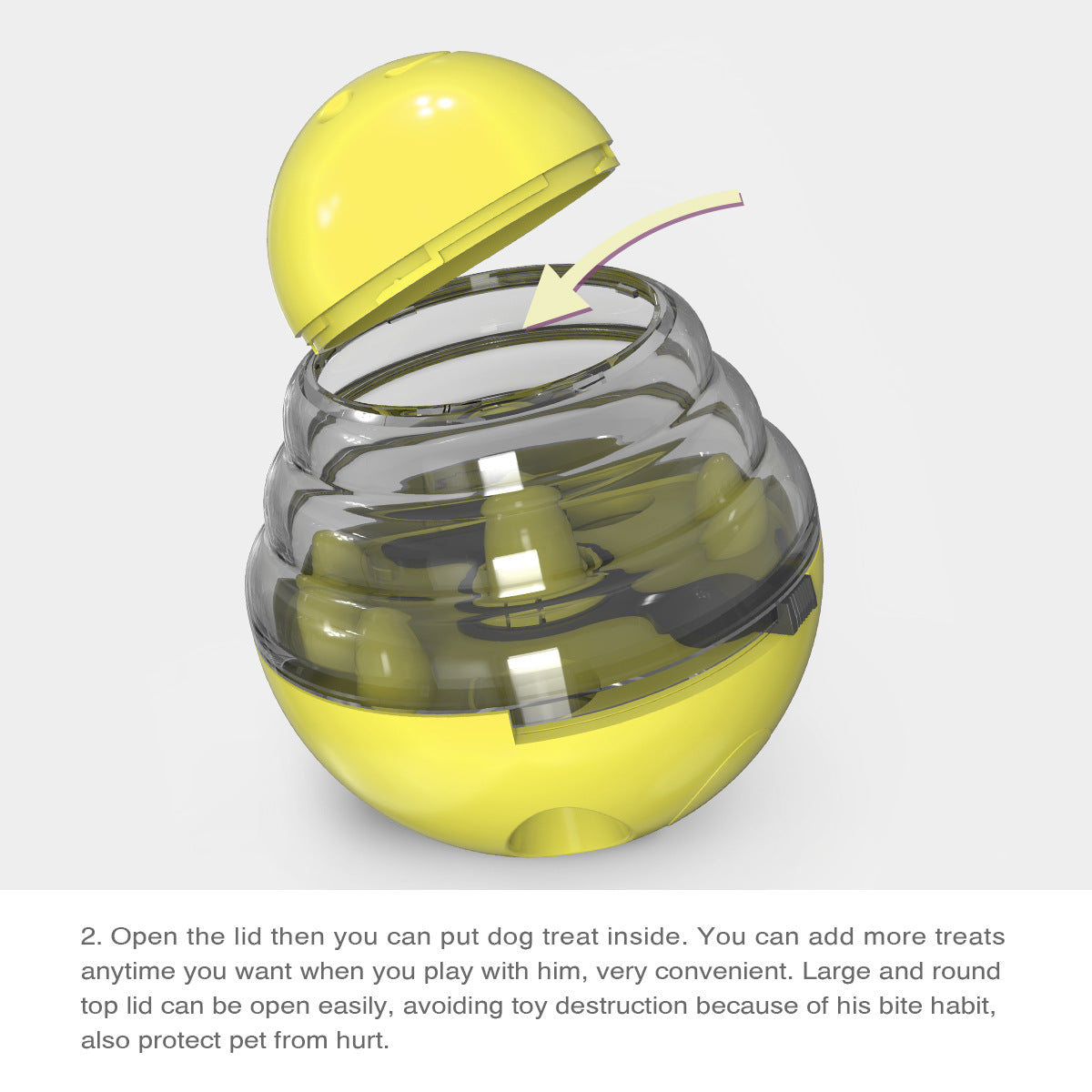 Innovative puzzle toy designed to mentally stimulate dogs while slowing down feeding. Features adjustable dispensing holes and internal maze barriers that extend playtime, reduce destructive behavior, and prevent choking. The wear-resistant construction withstands regular chewing and biting.