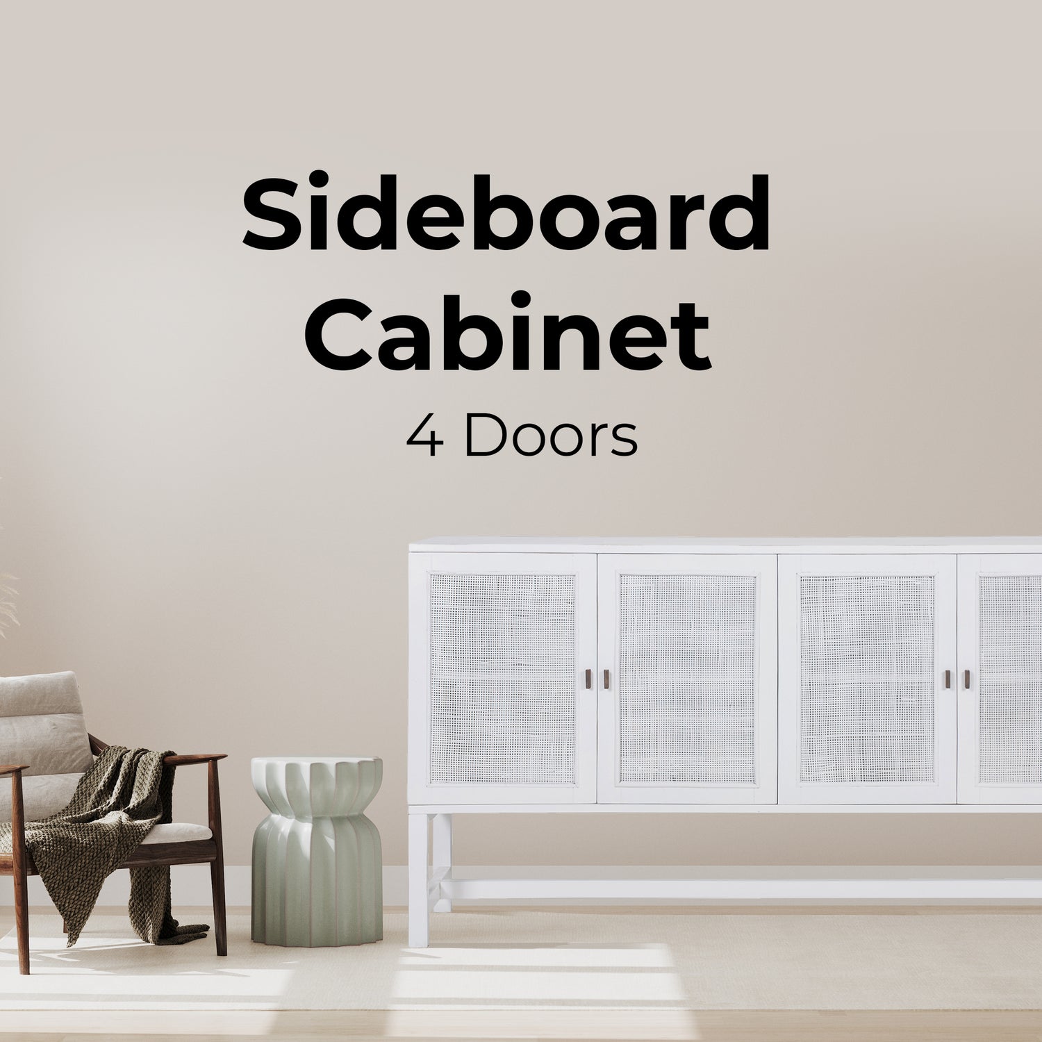 The Jasmine Sideboard Buffet Table 160cm 4 Door Mindi Wood Rattan - White is designed to enhance your living or dining space with practical storage and easy accessibility. Organize your dishes, linens, or everyday essentials with ease, ensuring everything you need is within reach. This sideboard is crafted for a smooth, hassle-free experience, making it a comfortable choice for both entertaining and daily use.