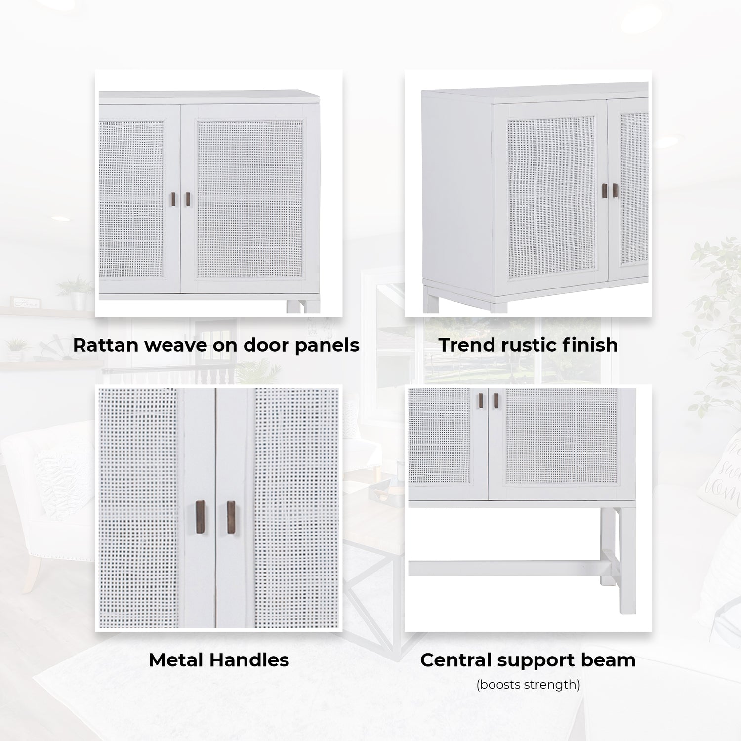 Accentuated with natural rattan, this sideboard features an airy yet sophisticated design. The expertly woven rattan panels add texture and visual interest, creating a harmonious blend of traditional craftsmanship and modern style commonly sought in Affordable Buffets & Sideboards.