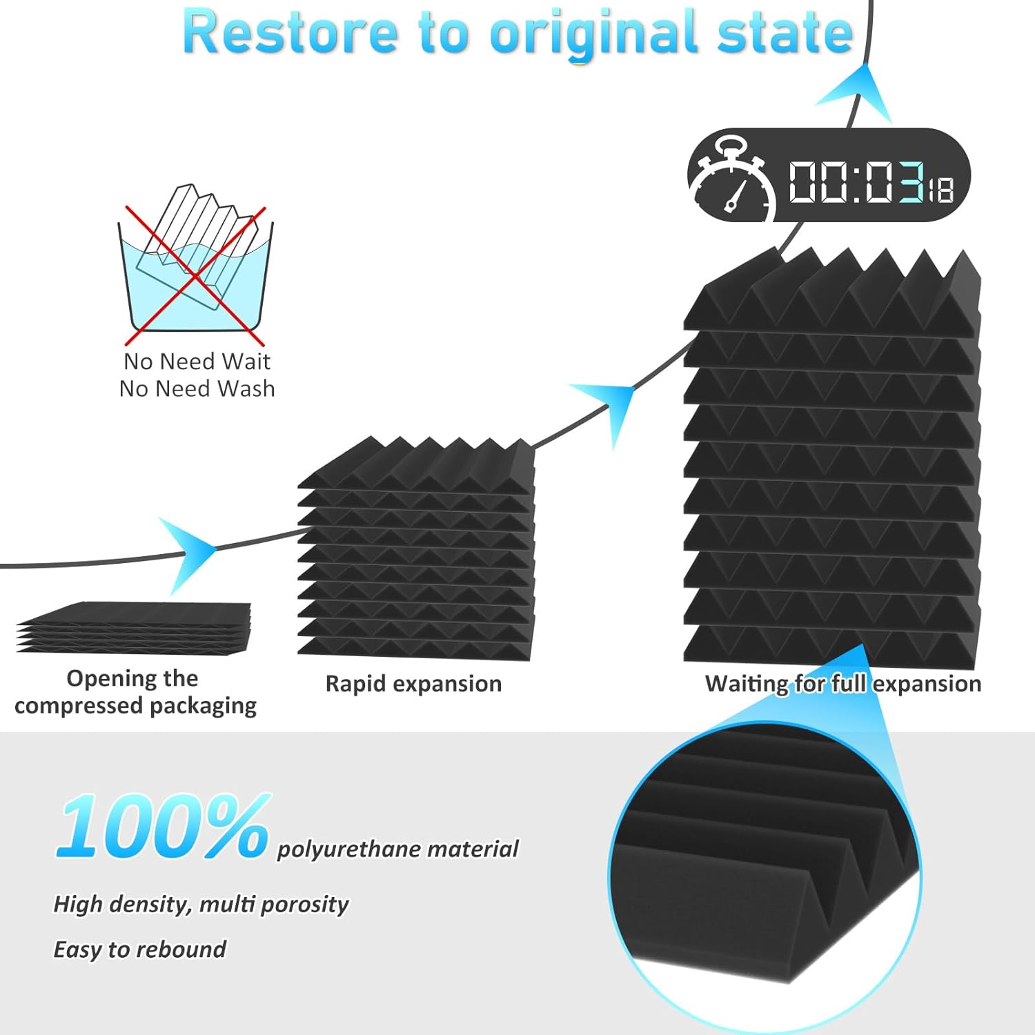 2" X 12" X 12" Acoustic Panel Studio Foam Wedges are 2 inch in thick and covering 1 square foot.