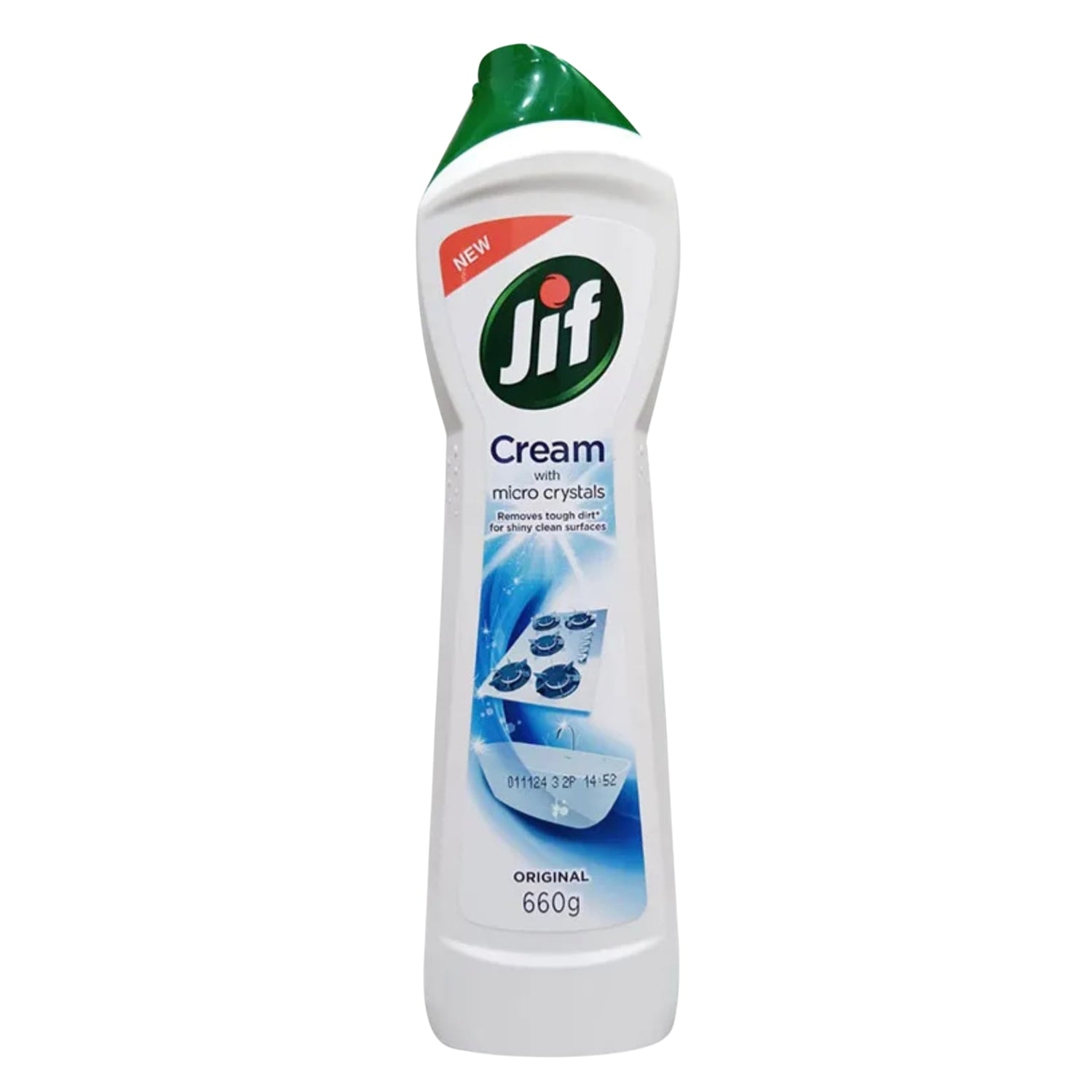 Jif Cream Original 660mL is a microcrystal infused cleaner designed to tackle tough dirt, grease, and limescale. Formulated with plant based ingredients, it lifts grime while leaving surfaces shiny, smooth, and fresh?smelling. Safe for use on ceramic, stainless steel, enamel, and more, it provides versatile cleaning without harsh chemicals.