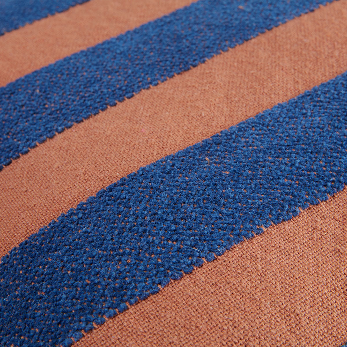 The KAAT Amsterdam Nissa Multi Stripe Square Filled Cushion 45cm x 45cm features wide woven Chenille stripes in blue and brown hues. These yarns create a fine, soft texture and a playful lool and feel. And you can place the decorative cushion however you wish, as the front- and backside are the same. The decorative cushion comes in several colourways. Decorative cushion Nissa is made of 100% cotton. The size is 45 x 45 cm. The cushion has a zipper at the bottom and comes with a resilient polyester inner cushion. Nice detail: the cushion has a golden puller at the zipper in the shape of an Amsterdam canal house. The cushion is not suitable for machine washing or tumble drying.