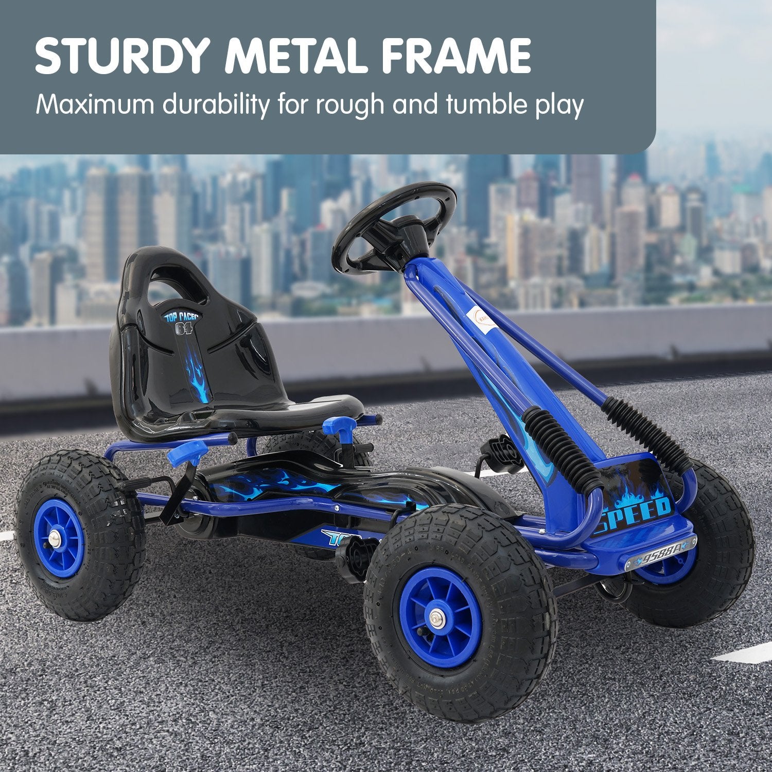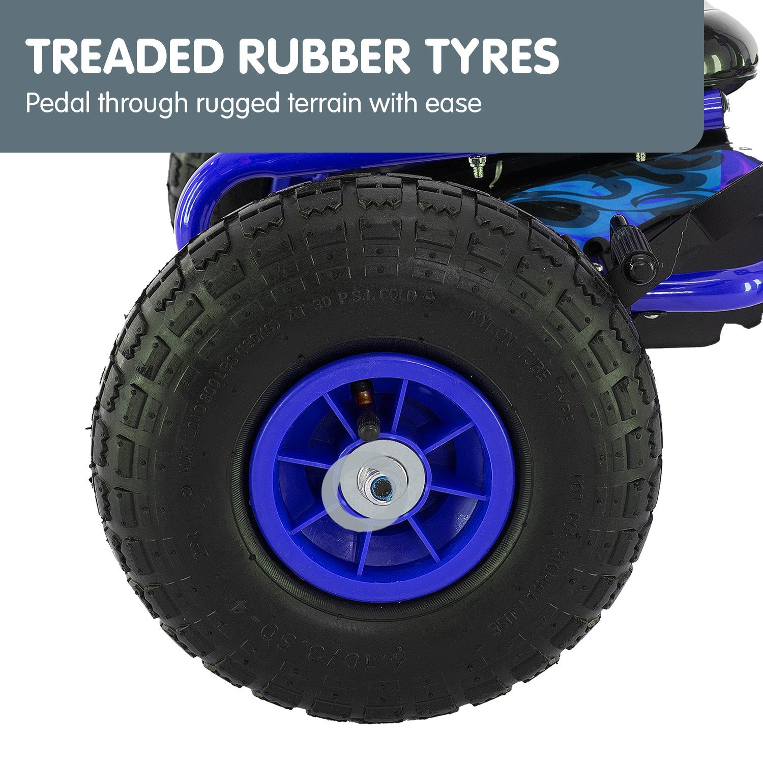 Take your kids outdoor activity to the next level with this G95 pedal-powered go-kart! With its contemporary design and cool flame decals, your little one will ride away with flair.