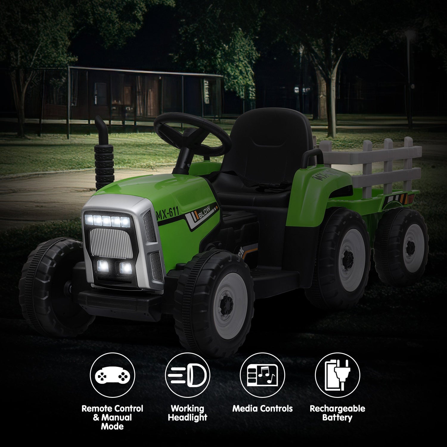 The interactive dashboard has Bluetooth, a USB port, music, story mode and volume control, so theres no shortage of entertainment while your little one rides. Its perfect for kids who are eager to enjoy the farm life outdoors!