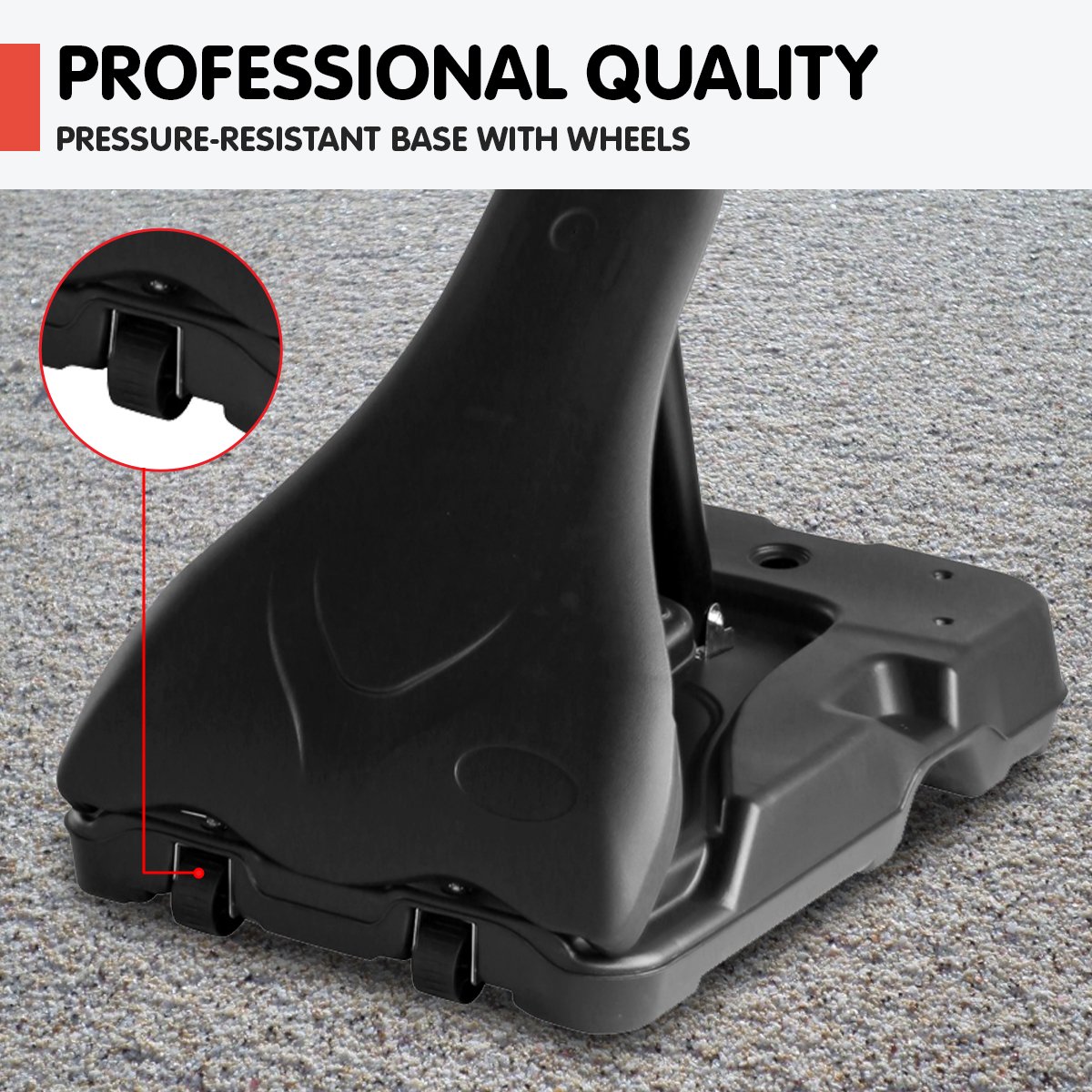The 150L base can be anchored with either water or sand to create a stable foundation. It has a built-in ball holder and a slanted support truss, which helps roll the ball back to you with every perfect shot. More reason to work on your accuracy stats! Finally, the roller wheels allow for easy storage and manoeuvrability.