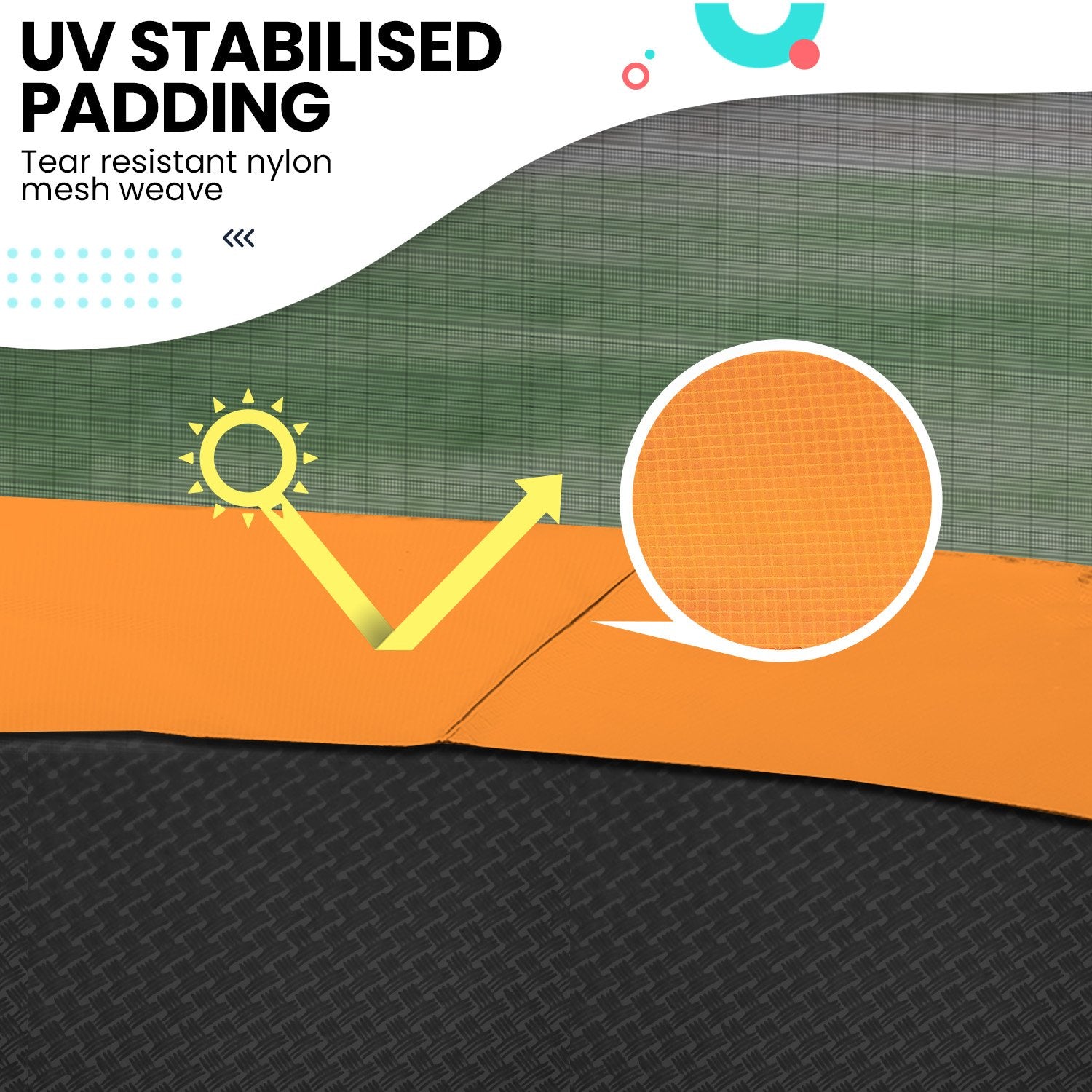Suitable for both children and adults, this trampoline has many safety features, including a reinforced and UV-stabilised padding cover, an anti-graze mat and a weatherproof net enclosure to prevent falls.
