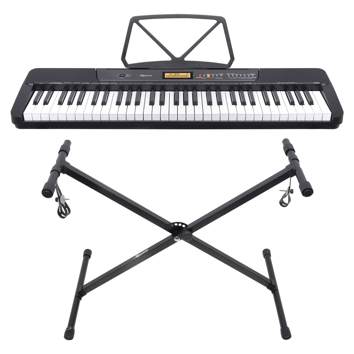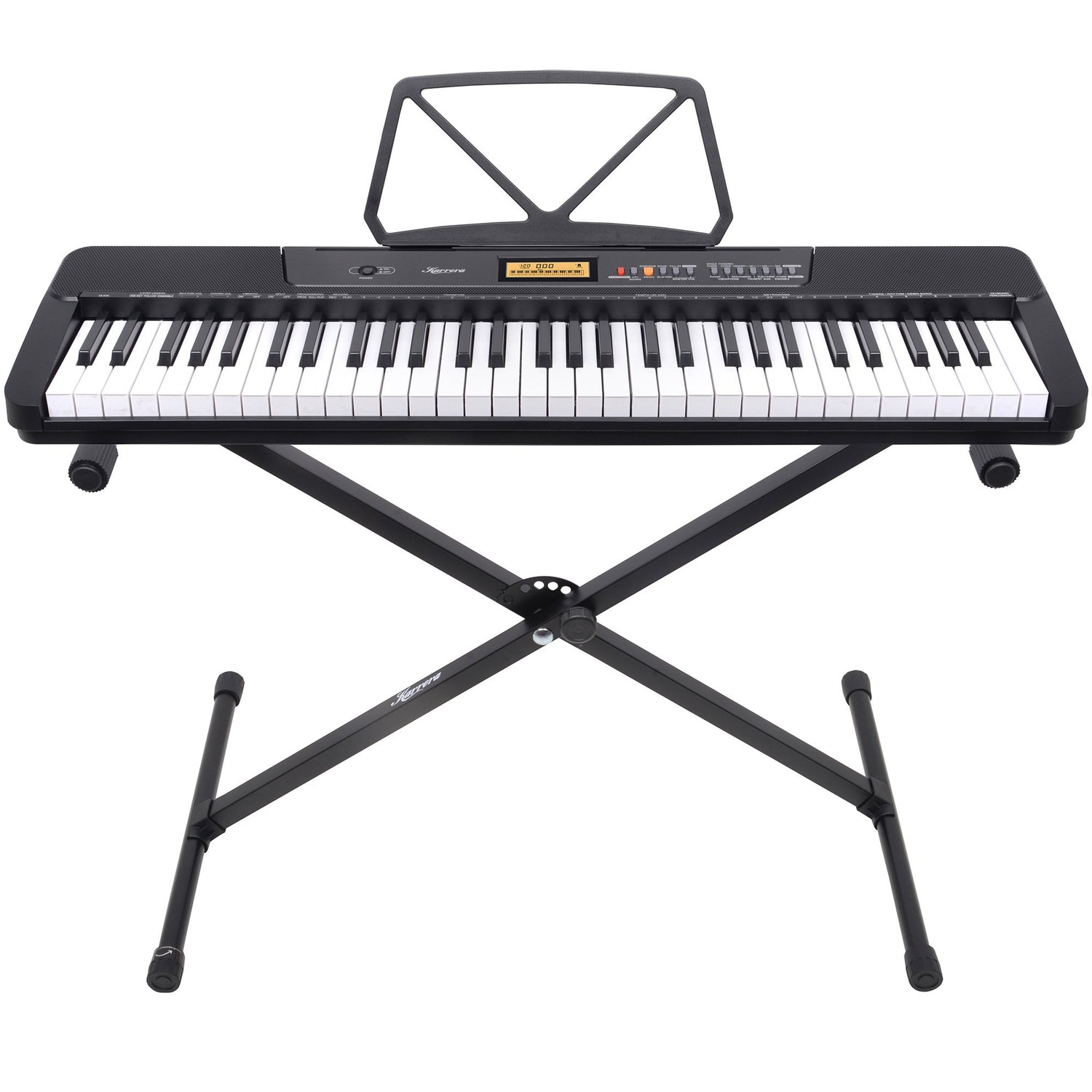 Unlock our musical talent with this immersive Karrera electronic keyboard! An excellent option for both beginners and experienced players, its touch-sensitive keys allow for personal expression, while the LCD display simplifies the navigation. It also comes with an adjustable stand featuring a safety lock pin for secure and stable height adjustment.