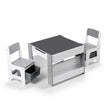 Keezi Kids Table and Chair Set, 4 in 1 Wooden Activity Table with Bookcase, Storage Box and Detachable Blackboard, Toddler Table and 2 Chairs Set, Grey