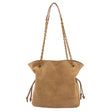 Khaki Chic Suede Hobo Bag for Women - Versatile Tote with Drawstring, Large Capacity Commuter Bucket Bag