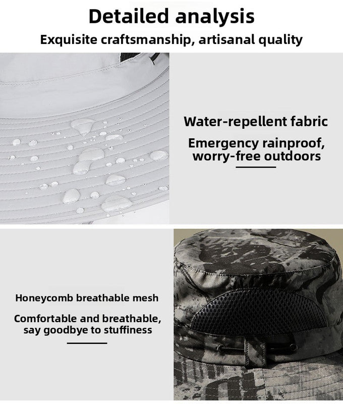 Practicality is key to the design. The hat includes an adjustable windproof chin strap to keep it secure during windy conditions or high-speed boat rides. The head circumference is adjustable (56-60cm), ensuring a snug fit for most adults. With its lotus-leaf water-repellent coating, it is also ready for sudden summer showers or splashing waves while fishing.