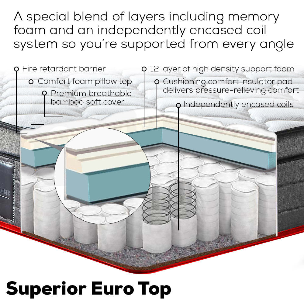 Kingston Slumber mattresses come with 6 Coil-9 Zone thick banded pocket springs that ensure you experience the most tranquil sleep. When you change position, the cushioning EuroTop exterior lining allows for an effective flow of air in and out of the mattress. All these features work in harmony to deliver a state-of-the-art therapeutic mattress solution that will provide consistency in your sleep cycle well into the future.