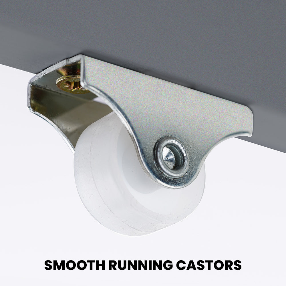 - Features smooth-running castor wheels for easy access