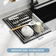 Kitchen Roll-Up Dish Drying Rack Foldable Drainer Over Sink 304-Stainless Steel(Medium:47*30cm)