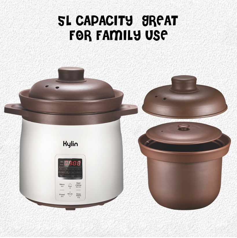 Kylin Electric Purple Clay Pot Slow Cooker 5L- K2021 adopts an Inner Pot made from highly-prized, authentic Chinese Purple Clay (ZiSha) used best for making soups, porridge, stewing tonic, etc. The porous clay is finely processed and skillfully treated. It contains minerals and iron, good at reducing fat content while making delicious food at the same time. Kylin Purple Clay Slow Cooker is made from unique organic unglazed Zisha clay, which has been produced for thousands of years in China. Different from other slow cookers in the market, Kylin does not contain any aluminum or non-stick chemicals in the pot. We are going to put over its amazing features that will help you differentiate this product from other local pots in the market.