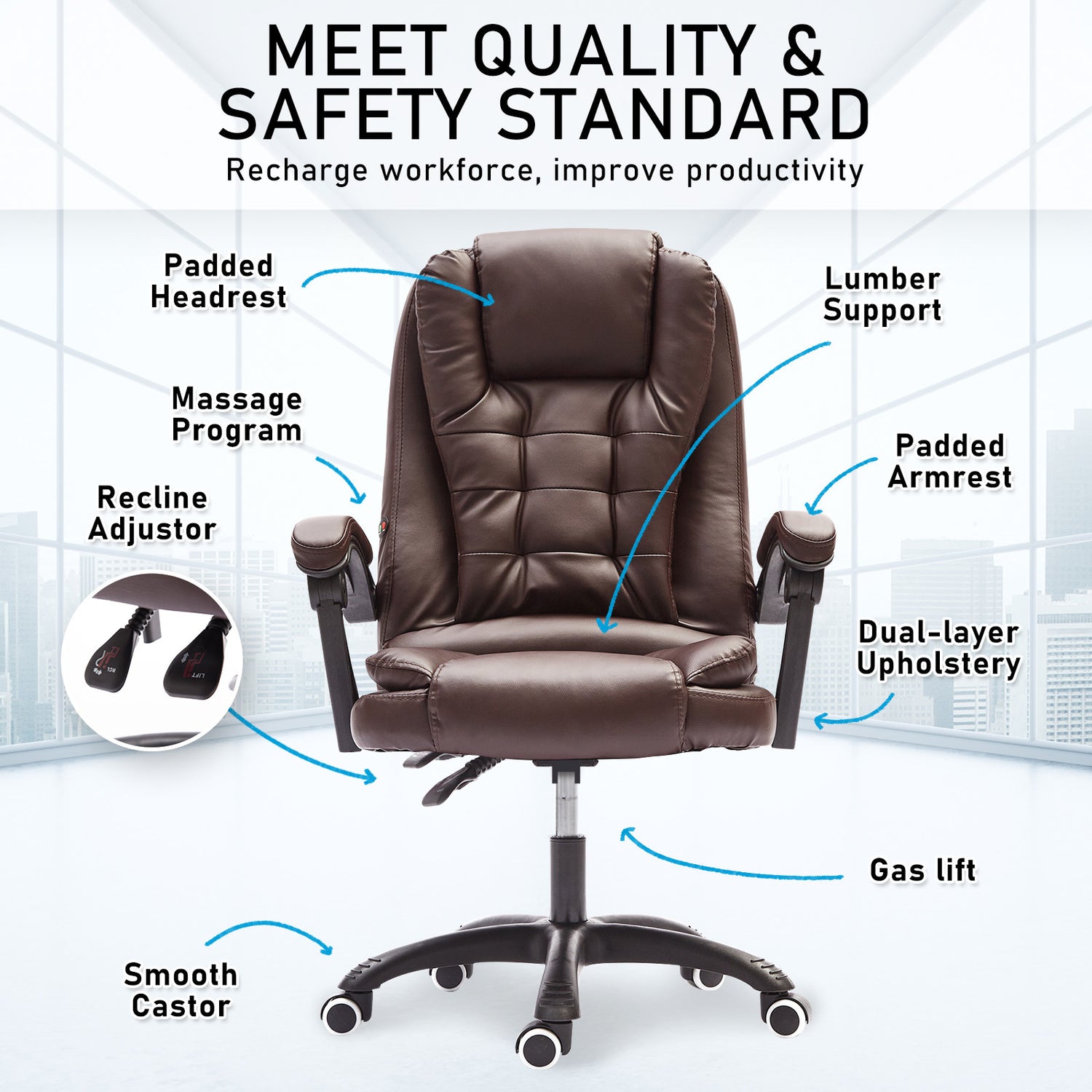The adjustable height SGS-certified gas lift ensures stability at all times so you can be confident that this chair assures safety and will give you a long service life! Overall, our chair is the perfect investment in personal well-being and employee morale maximizing productivity. It is suitable for working, relaxing, reading and playing games. Investing in our massage office chair is an ideal idea you will not regret.