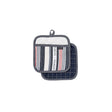 Stylishly protect your hands from the heat while handling hot pots and dishes Entertainer Charcoal Set of 2 Pot Holders 21 x 21 cm by Ladelle. 100% AZO free dyes. Made to European Quality Standards. A convenient kitchen accessory that keeps your hand safe while cooking. If features quilted design highlighted with stripes pattern in white, navy, red, and grey colour tones. It is made from quality 100% Cotton fabric and Polyester fill.