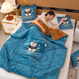 Lake Blue Padded Thickened Hat Bear 2-in-1 Foldable Car Pillow Blanket - Cozy 40x40cm Pillow, Unfolds to 100x150cm Blanket for Travel and Office Naps