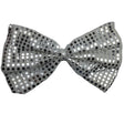 LARGE BOW TIE Sequin Polka Dots Bowtie Big King Size Party Costume - White/Silver