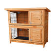 Crafted from solid fir with an amber stain, this hutch will look amazing in your backyard or garden. Its rustic finish shows off the grain of the wood, while its durable construction and powder-coated wire mesh will protect your pets for years to come. It's waterproof and easy to assemble and you can even use it to shelter two animals simply by separating each level. Pull-out trays and an easy-open roof make cleaning a breeze. Your pets deserve a home as lovely as your own. Get your two-storey hutch today!