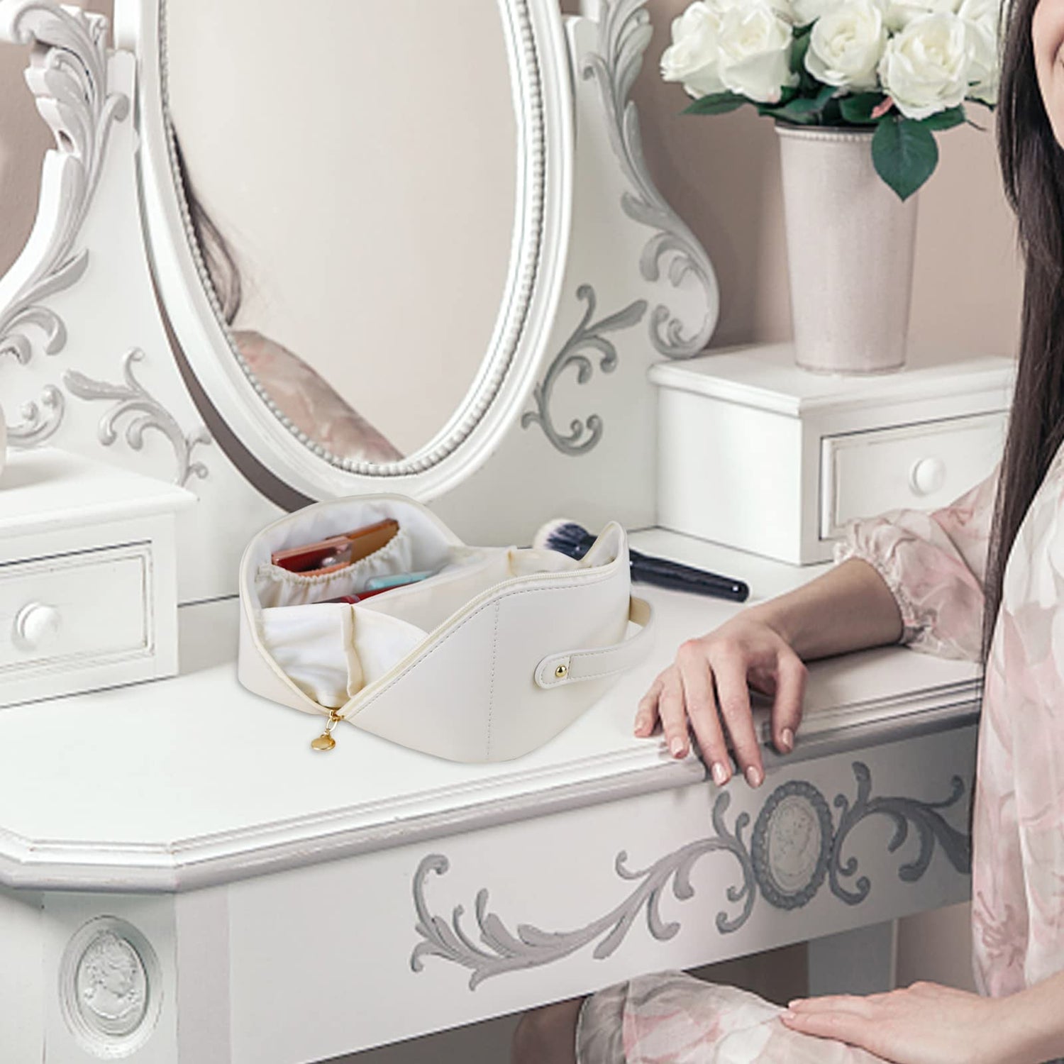 Large Travel Cosmetic Bag Portable Make up Makeup Bag Waterproof PU Leather Storage White