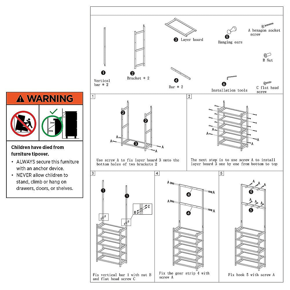 - Features a spacious 5-tier shelving system, offering ample storage for clothing and footwear.