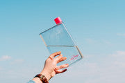 Did you get the memo? If not, then these Flat Bottles are the latest trend. Crystal clear with lids and matching print these bottles are roughly A5 in size and flat so they can easily be carried in a laptop bag or similar.