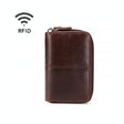 Leather Rfid Zipper Card Holder with Change Pocket - Coffee
