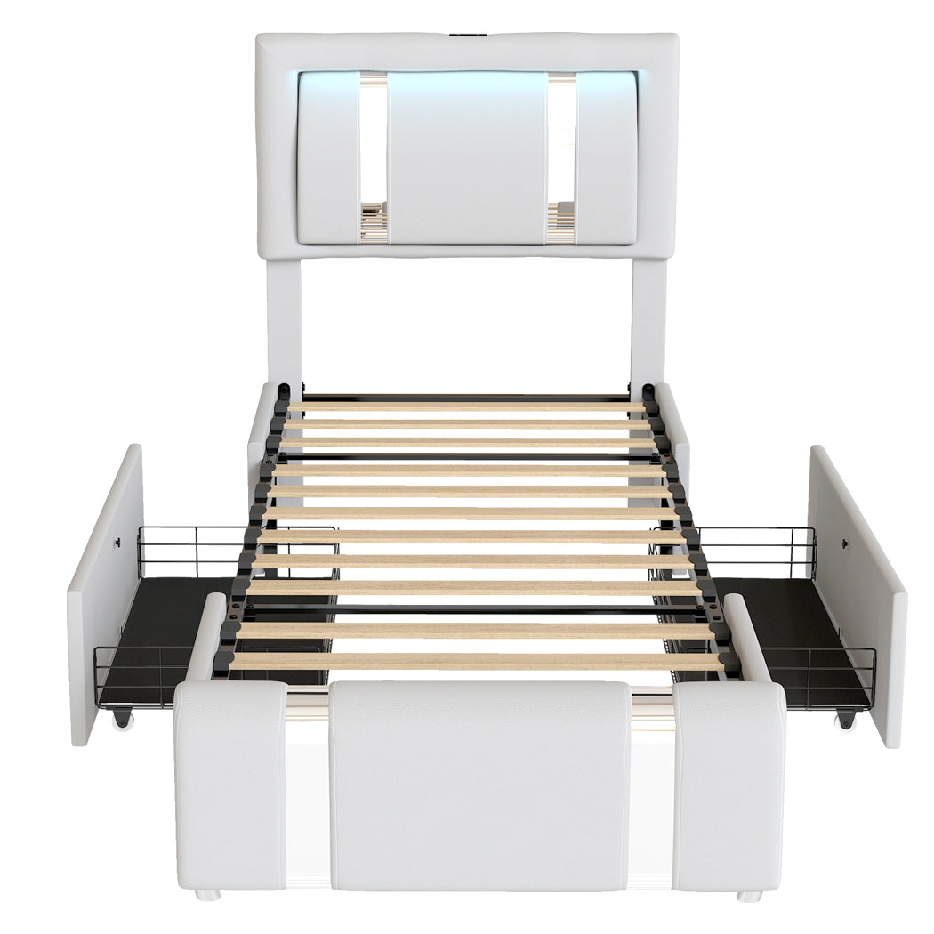 Levede Bed Frame with Adjustable PU Leather Headboard, LED Light Strips & Storage