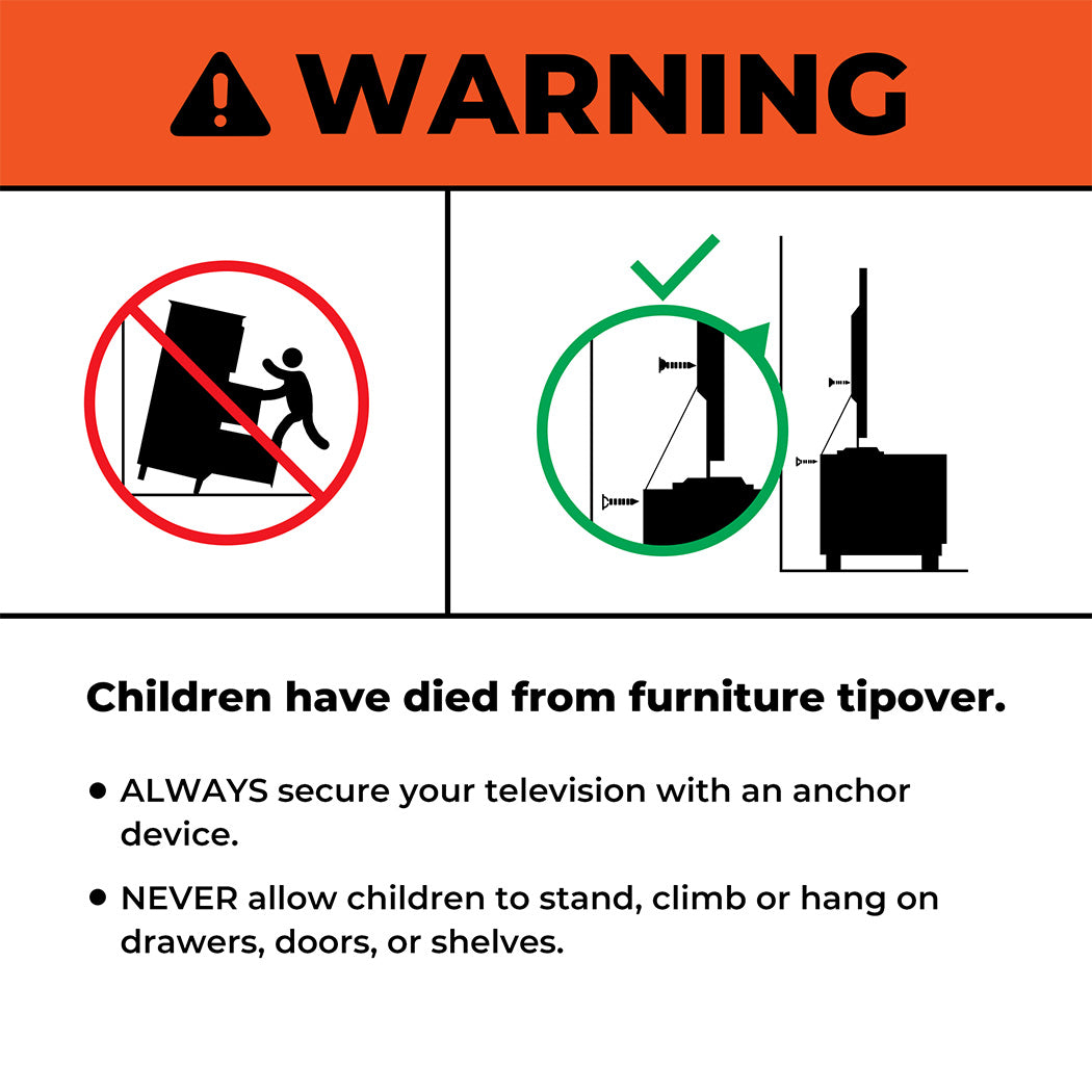 - ALWAYS secure your television with an anchor device;