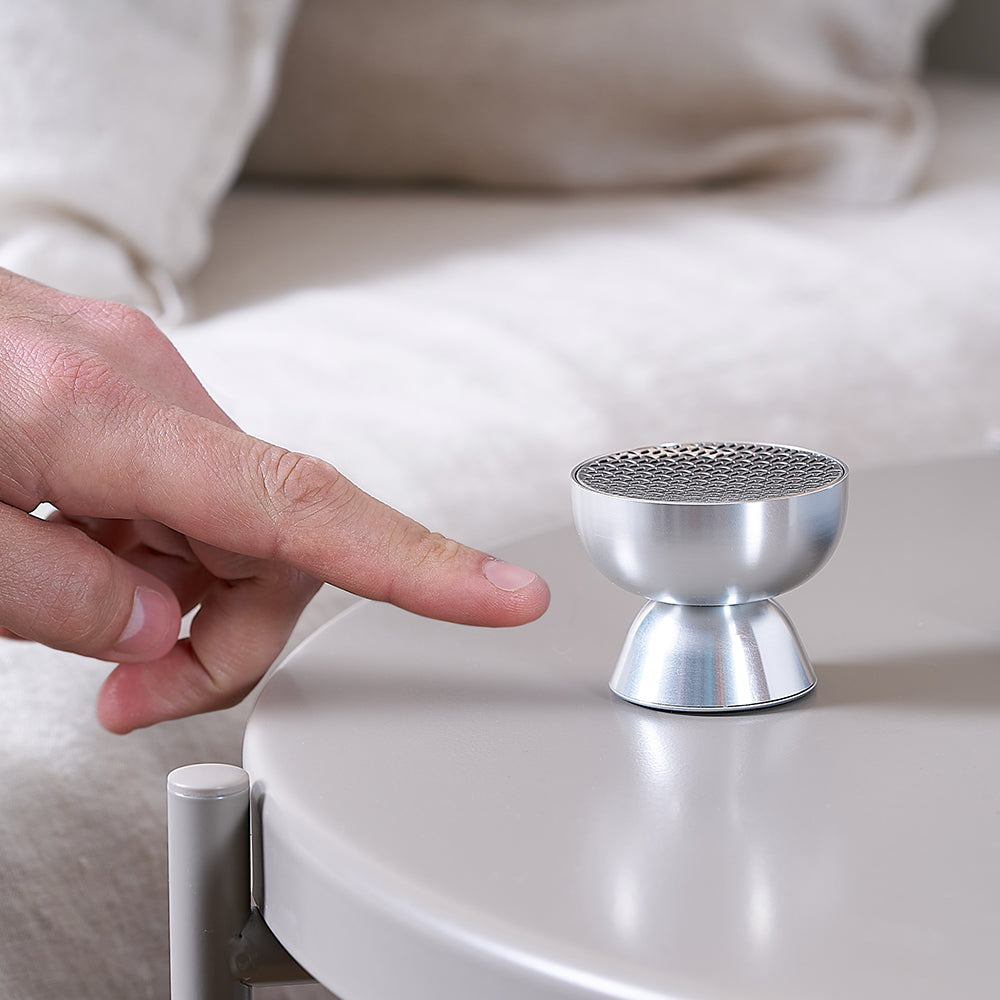 Lexon Tamo Infinitely Pairable Bluetooth Speaker - Alu Polish - Tamo stands as the first compact Bluetooth speaker of its kind, revolutionizing the way we experience sound. Its unique ability to be infinitely paired to other Tamo creates a surprising audio network, expanding the horizons of traditional speaker setups. Crafted meticulously and designed for innovation, Tamo redefines what is possible in terms of audio connectivity. With Tamo touch controls located conveniently on the base, managing audio commands and adjusting volume becomes effortless. Whether you're on the move or at home, stream your music from your smartphone or tablet for up to 3 hours.